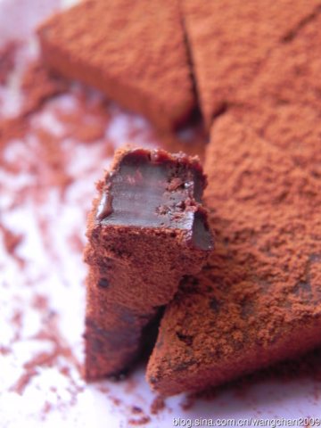 5、切成喜欢的形状,筛上防潮可可粉冷藏保存。