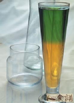 4.把作法1稀释好的薄荷果露缓缓倒入作法3的杯中即可。
