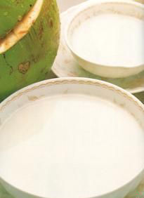 1、荸荠洗净,拍成茸状,椰子剖开倒出汁来,鲜奶于杯中备用。