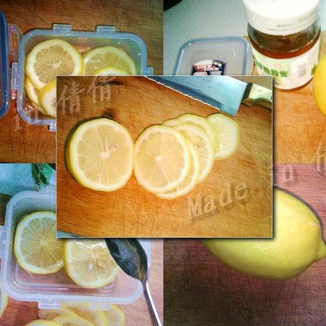 洗净切片~在保鲜盒里放一层柠檬片抹一层蜂蜜;