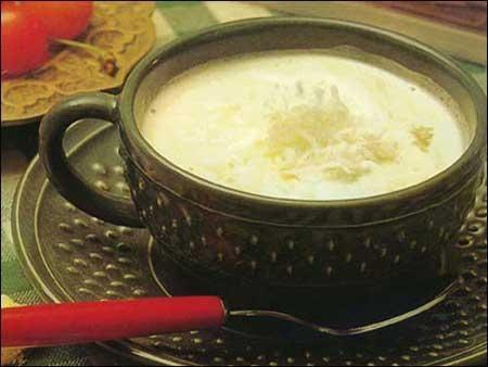 牛奶60亳升,2滴椰子香精,一些熟椰子末,一匙奶油