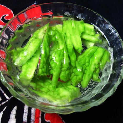 冷藏的时间越长,水中的苦味越浓,而苦瓜也吸收了饮料的味道,清甜爽口,口味大大降低,直接吃更加清脆爽口。