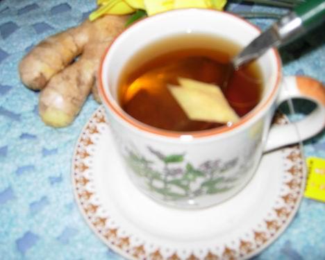 将鲜生姜洗净,切成薄片,与红茶同入杯中,用沸水冲泡,加盖闷5分钟即成。