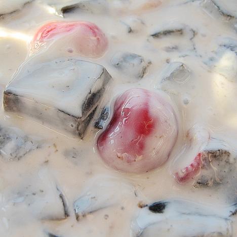 3.于作法2的清冰上淋入糖水,加入作法1的仙草块即可。