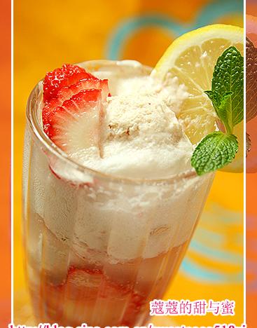 草莓5粒,冰淇淋1大勺,冷藏过的雪碧一杯