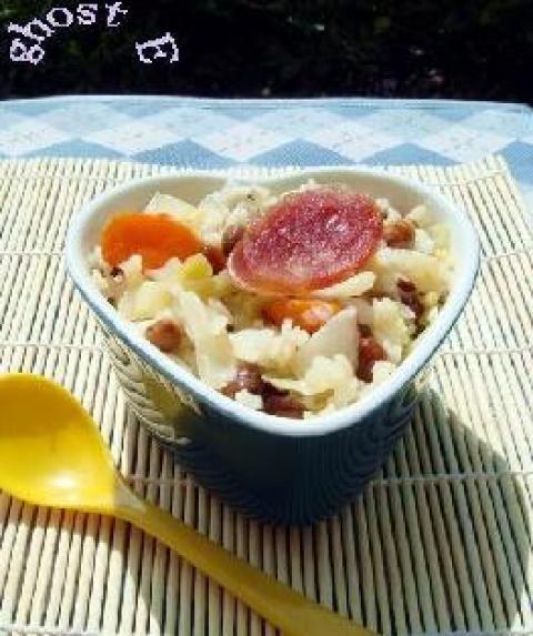 大米,卷心菜,黄豆,胡萝卜,腊香肠,盐,鸡精