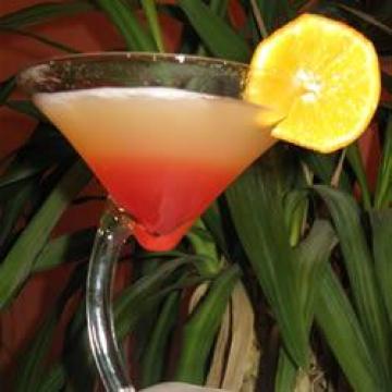 1.在装满冰的调酒罐里倒入菠萝汁、伏特加和石榴糖浆,摇匀后滤到2个马提尼杯里,每杯用细签穿上的1小块菠萝和1颗樱桃来装饰即可。