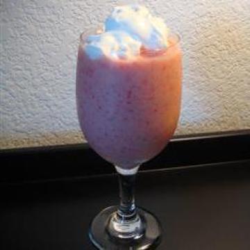 1.将悬钩子汁、香蕉、橙子、草莓、果子露、冰块和蛋白粉一起放到搅拌机里。用高速搅拌均匀,大约一分钟。如果太稀的话加些果子露,如果太厚加些悬钩子汁。然后倒到2个玻璃杯里,用吸管吸着饮用即可。