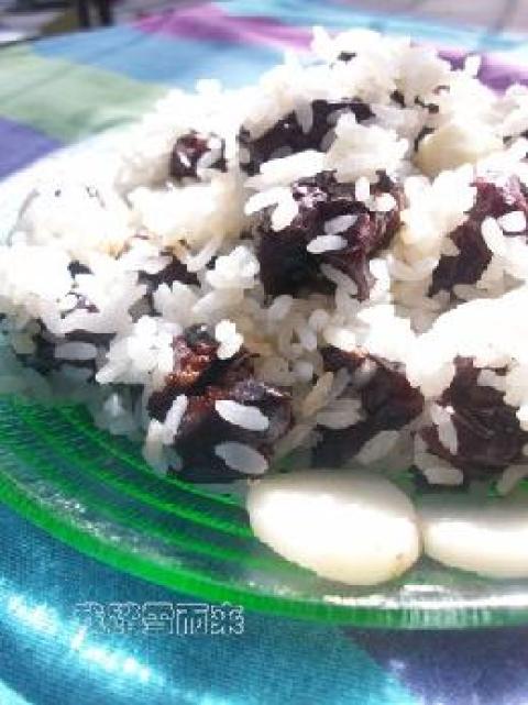 3.米饭焖至水干,将枣和山药转而倒入锅内,继续焖至饭锅自动跳闸;