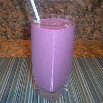 冷冻香蕉1根(冰冻10-15分钟),香草味豆奶120毫升,香草味脱脂酸奶245克,亚麻籽6克,蜂蜜8毫升,冷冻蓝莓105克