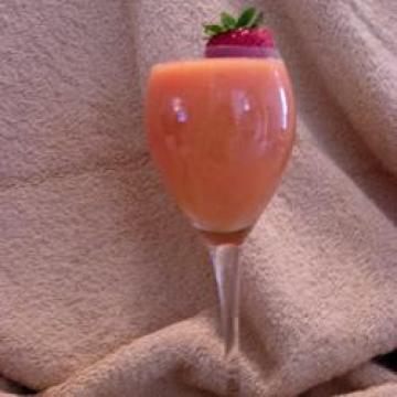 2、将芒果、木瓜、草莓、橙汁和冰块放到一个电动搅拌器里,搅拌至所有原料都均匀即可。
