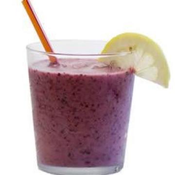 蓝莓脱脂酸奶224克,脱脂牛奶355毫升,冰块235毫升,新鲜蓝莓145克,新鲜草莓155克,柠檬果汁粉5克