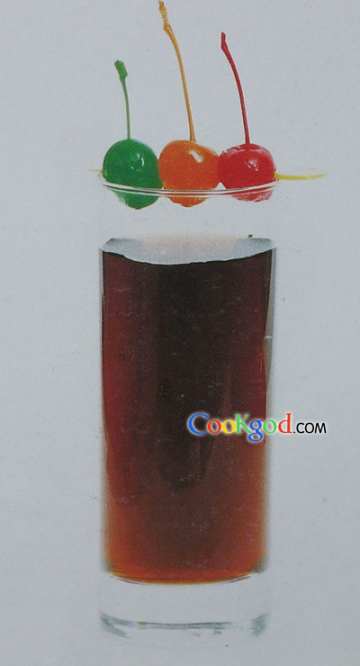 配方:热咖啡150毫升,糖水1盎司,白兰地1/2盎司,七喜汽水1瓶,冰块1杯