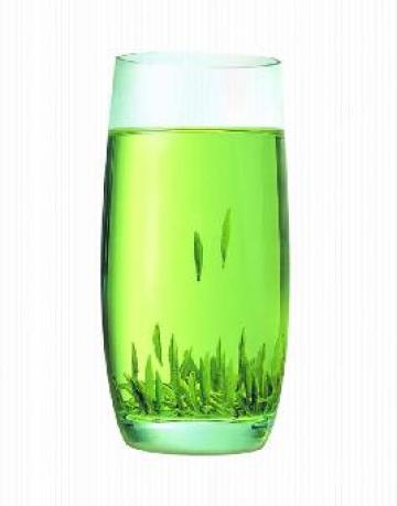 先将绿茶放入白瓷杯中,倾入开水浸泡3分钟,轻微摇晃后,倾去洗茶水,此为清洗茶叶上的灰尘以及农药;