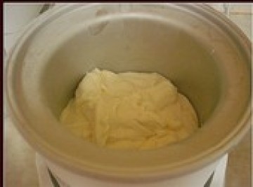 3、然后取出冻酸奶放冰淇淋机里按说明书来搅上一搅就好了。