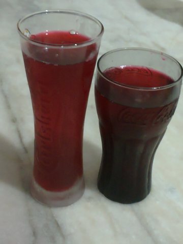 1.洛神花&班兰叶洗净同锅水,大火转小火煲煮至花烂。