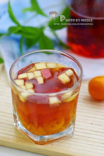 红茶包1个,苹果1/2个,小金橘4个,蜂蜜少许,糖桂花少许