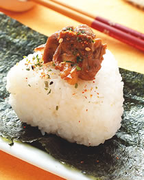 5.取适量作法4的内馅包入白饭中捏紧成饭糰,可依喜好分别包成数颗或再裹上海苔即可