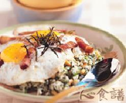 4.将作法3的培根蛋小心舖在作法2的菠菜饭上即完成。