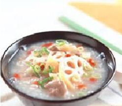 将粳米洗净,加水煮至半熟,加入洗净之鲜藕片,煮至烂熟。