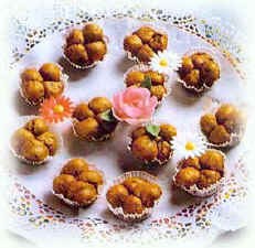 2、将玫瑰糖、洗沙、麻仁各20份荞面团揉匀出条下剂子80个,将剂子按扁,分别包人一种馅心,装入模具上笼蒸10-15分钟,取出脱模装盘,用樱桃点缀即可。