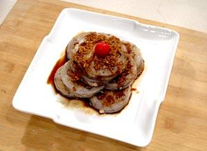 3.平底锅刷少许油,待热后,用勺子舀少量面糊,在锅中摊成圆饼状煎熟至两面金黄即可