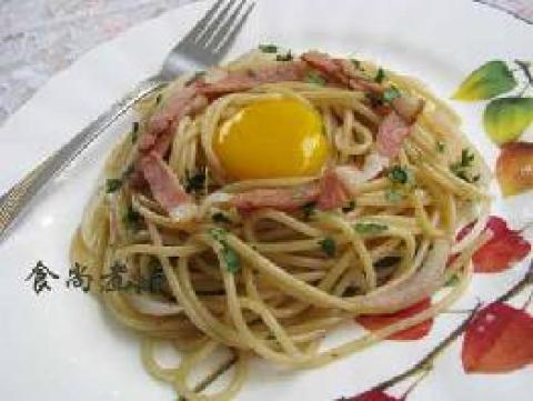 第一种:面食菜谱培根蛋黄面做法