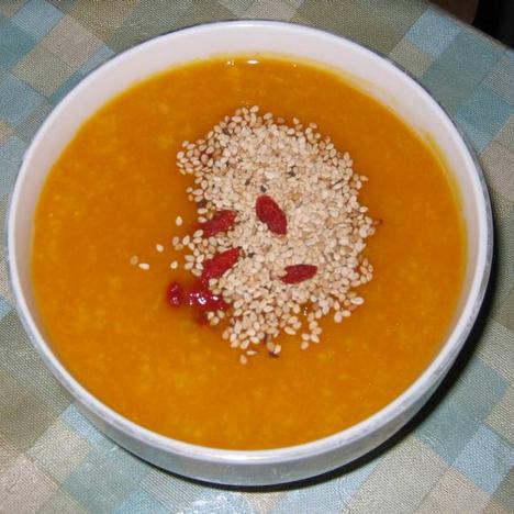 做法:南瓜去皮切块,小米洗净后用水浸泡20分钟;准备半瓶开水,倒入电饭锅中,下小米煮30分钟;煮小米时,用搅拌机将南瓜打成泥(省略也行)。30分钟后,加入南瓜同煮,继续煮15分钟即可,中间要时时搅一搅,避免粘锅。