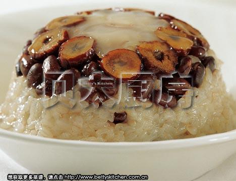 1、赤豆、桂圆肉事前浸泡好,红枣(去核)洗净。糯米淘洗干净,放置少量清水泡胀半小时以上待用。