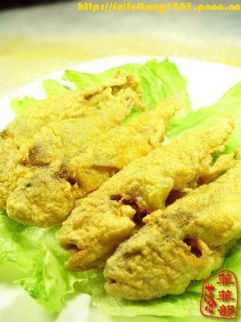4.炸好的面拖小黄鱼用椒盐蘸食。