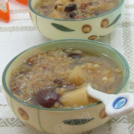 大米50克,糯米50克,香米50克,绿豆20克,红小豆20克,高粱米20克,枣50克,葡萄干30克,山药150克,水2000克