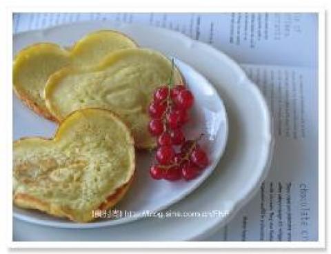 4.没有心型的锅可以用普通的大的平底锅(在国外的朋友可以用electric griddle,用心型的模子做出造型(就是面糊倒入心型模子中)。