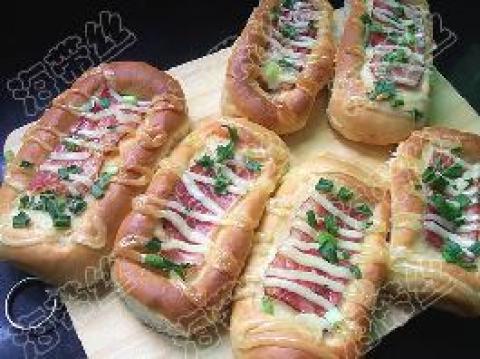 第一种:面食菜谱香葱培根面包做法