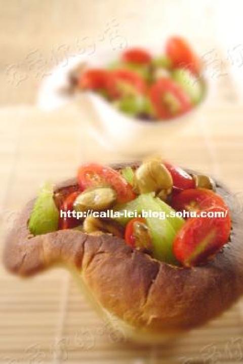 面包碗,樱桃番茄,西芹,兰花豆,调料