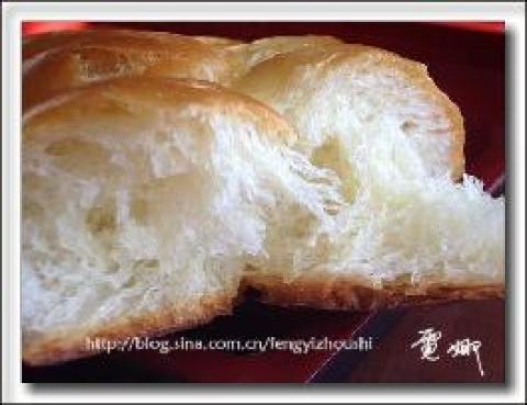 高筋面粉(breadflour)500克,干酵母(yeast)15克,白砂糖100克,盐5克,奶粉10克,凉水260克,鸡蛋一只,奶油(butter)50克