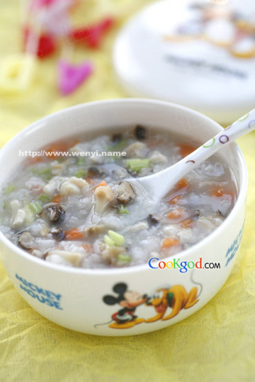 第一种:主食菜谱香菇鸡茸蔬菜粥做法