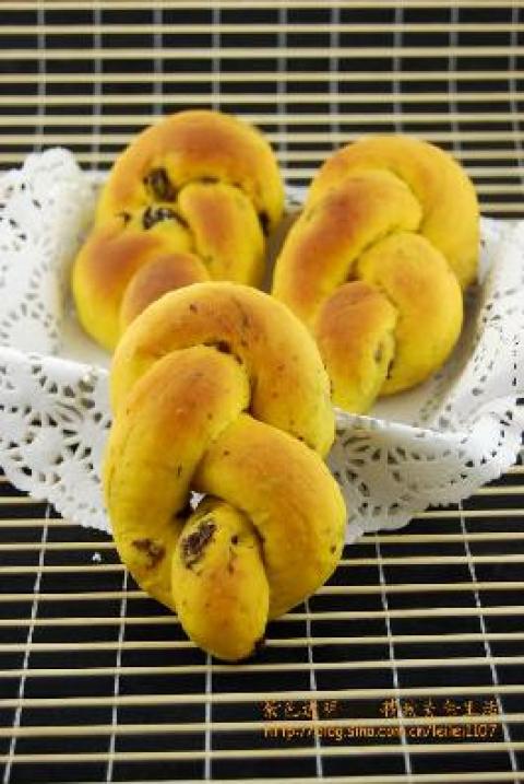 第一种:面食菜谱金灿葡萄干南瓜编花面包做法