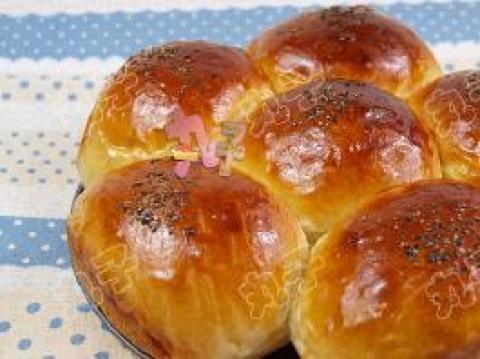 原料:,高粉250g,白砂糖25g,盐1/2小匙,奶粉10g,酵母3g,鸡蛋15g,水150ml,黄油20g,肉馅:,牛肉末40g,洋葱丁30g,黑胡椒碎1/8小匙,盐.1/8小匙,装饰用黑胡椒碎适量