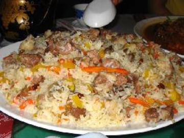 主料:大米400克,绵羊肋条肉250克,胡萝卜80克,洋葱200克,