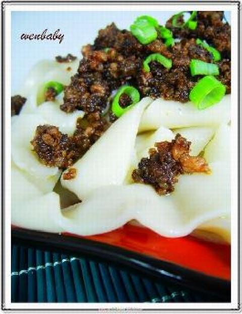 第一种:面食菜谱葱香肉酱裤带面做法