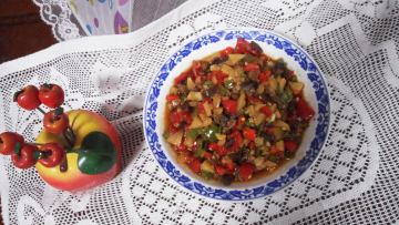 西红柿和辣椒的比例视个人口味调整,一般1:1,不喜吃辣的可以增加西红柿的量。