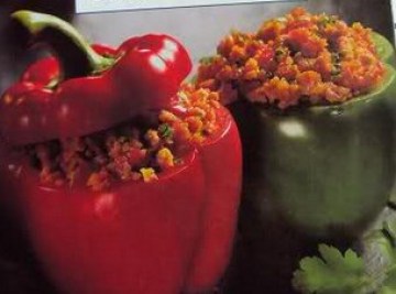 5、铺满mozzarellacheese,放入烤箱,400f,15分钟就烤好啦!可以直接食用也可以弄在青红椒(挖空)里,摆盘。