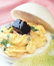 3.将馒头剖开,夹入作法2的蛋松,再加入豆腐乳即可享用。