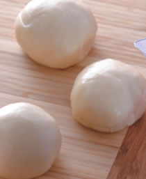 3.待作法2表面呈现光滑并成糰后,用干净的湿布将面糰仔细包好并静置约10分钟,再将搓揉约1分钟。