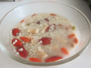 2、再加入枸杞(精鹽少許)煮五分鐘即可。