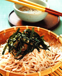 3.食用时将荞麦面放入加了冰块的凉开水中冰镇,捞出后,表面放上海苔丝沾作法2的酱汁食用。