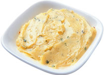 2.奶油放锅用小火融化,加入玛琪琳和蒜泥,搅拌后洒上俄力冈草和盐,即可装入保鲜盒中,待凉后放入冰箱保存。