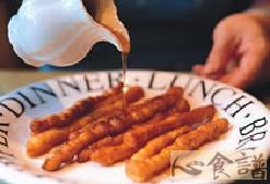 3.将发酵完成的面包棒以油温180℃油炸至双面呈金黄色,即捞起将油份沥干,沾取枫糖食用即可。
