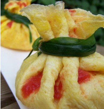 10. 用另一端的蛋皮盖住茄汁饭。