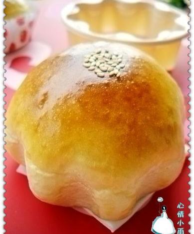 将基础发酵好的面团分割滚圆成十小份,松弛20分钟,擀成圆形包入炒好的馅料,整成圆形放入模具,进行二次发酵。二次发酵完刷蛋液、撒白芝麻,入长帝烤箱180度12-14分钟。